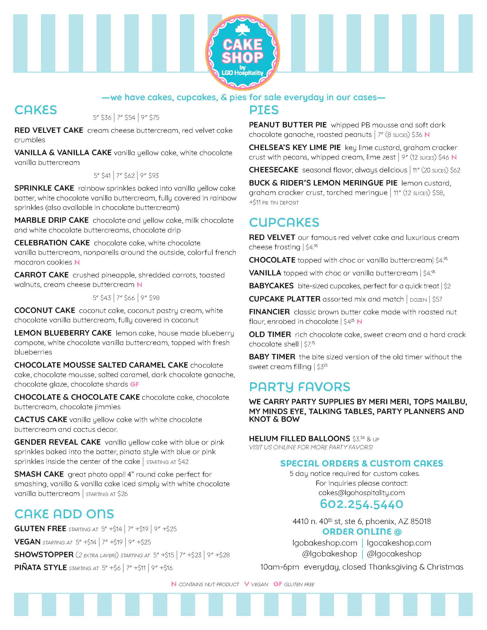CAKES, PIES, CUPCAKES & ADD-ONS